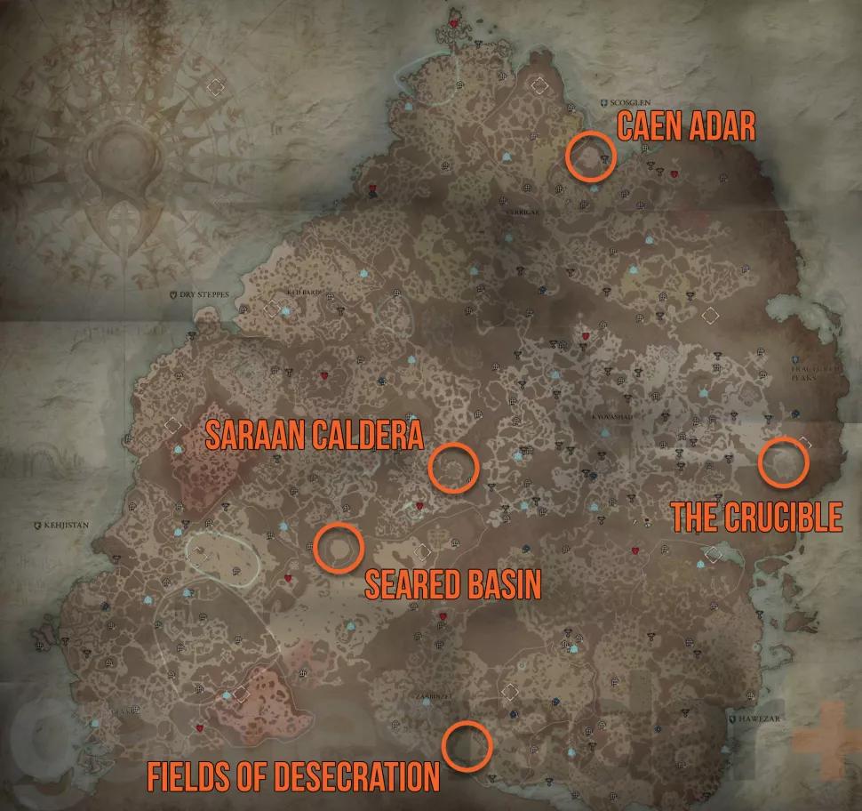 Searing Basin of Kechistan. Northeast of Kechstein. The arena is located north of Tassalac in Kehistan, roughly southeast of the Dry Plains of Giranda.